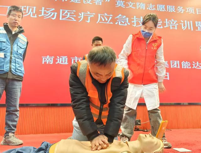 活动现场,来自开发区文明办、慈善总会和南通市中医院、开控集团、开发区住建局的莫文隋志愿者们,以“理论宣讲+现场示范”的形式,为工友们开展了实操性工地施工现场医疗应急技能培训。同时,还为在场的数百名工地建设者提供了中医义诊志愿服务,包括急救技术讲解、操作演示、量血压、刮痧等非药物治疗,受到了工友们的高度好评。