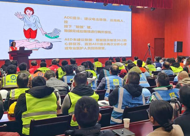 活动现场亮点纷呈。南通市中医院行政一支部和门急诊一支部的专家志愿者医疗队为工友们带来了急救技术讲解和操作演示。急诊科韦维医生首先为工友们讲解了急救知识,随后,资深护士李瑄进行了急救操作演示。活动现场气氛热烈,工友们积极参与互动。